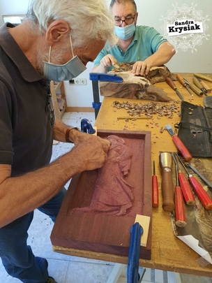 Trabajos en proceso en un día de calor. Talla Guadarrama.